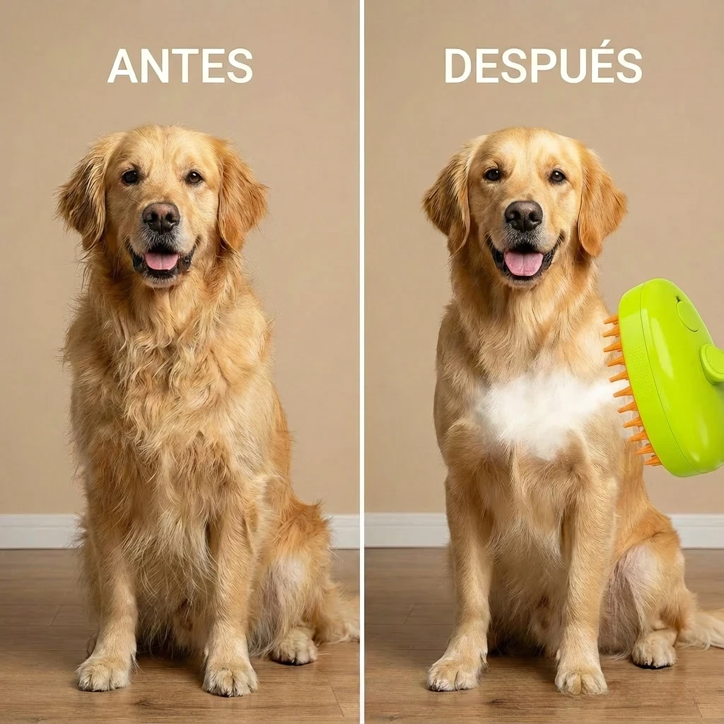 Este cepillo 3 en 1 combina cepillado + vapor + masaje, ideal para eliminar pelo muerto, reducir enredos y dejar el pelaje suave y brillante. Perfecto para perros y gatos de todo tipo de pelaje.